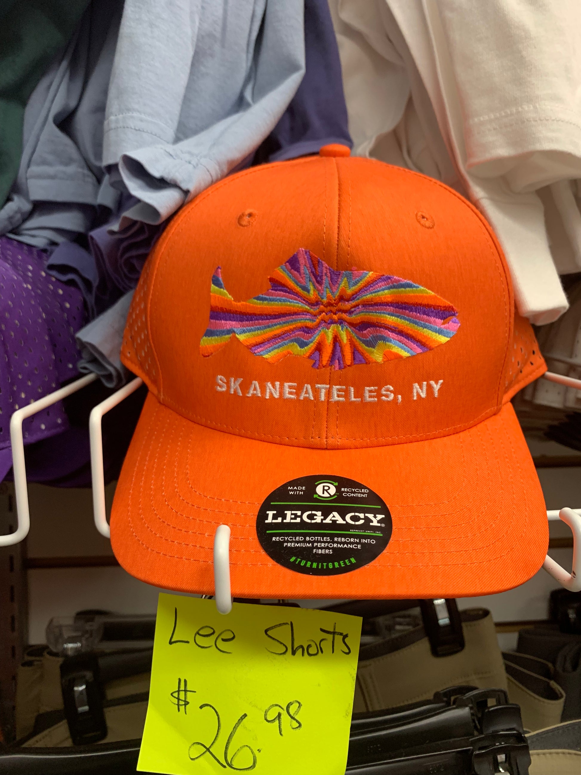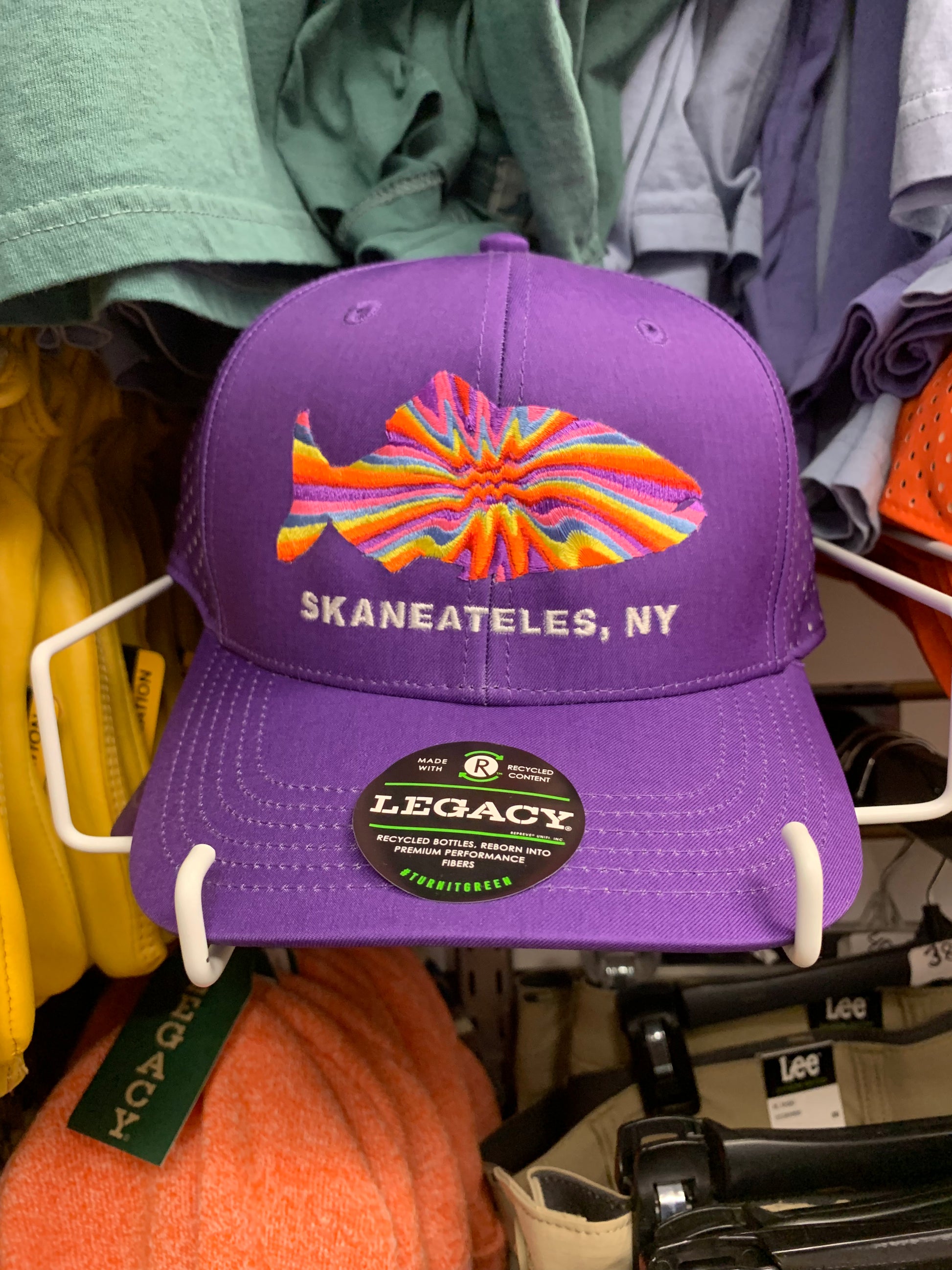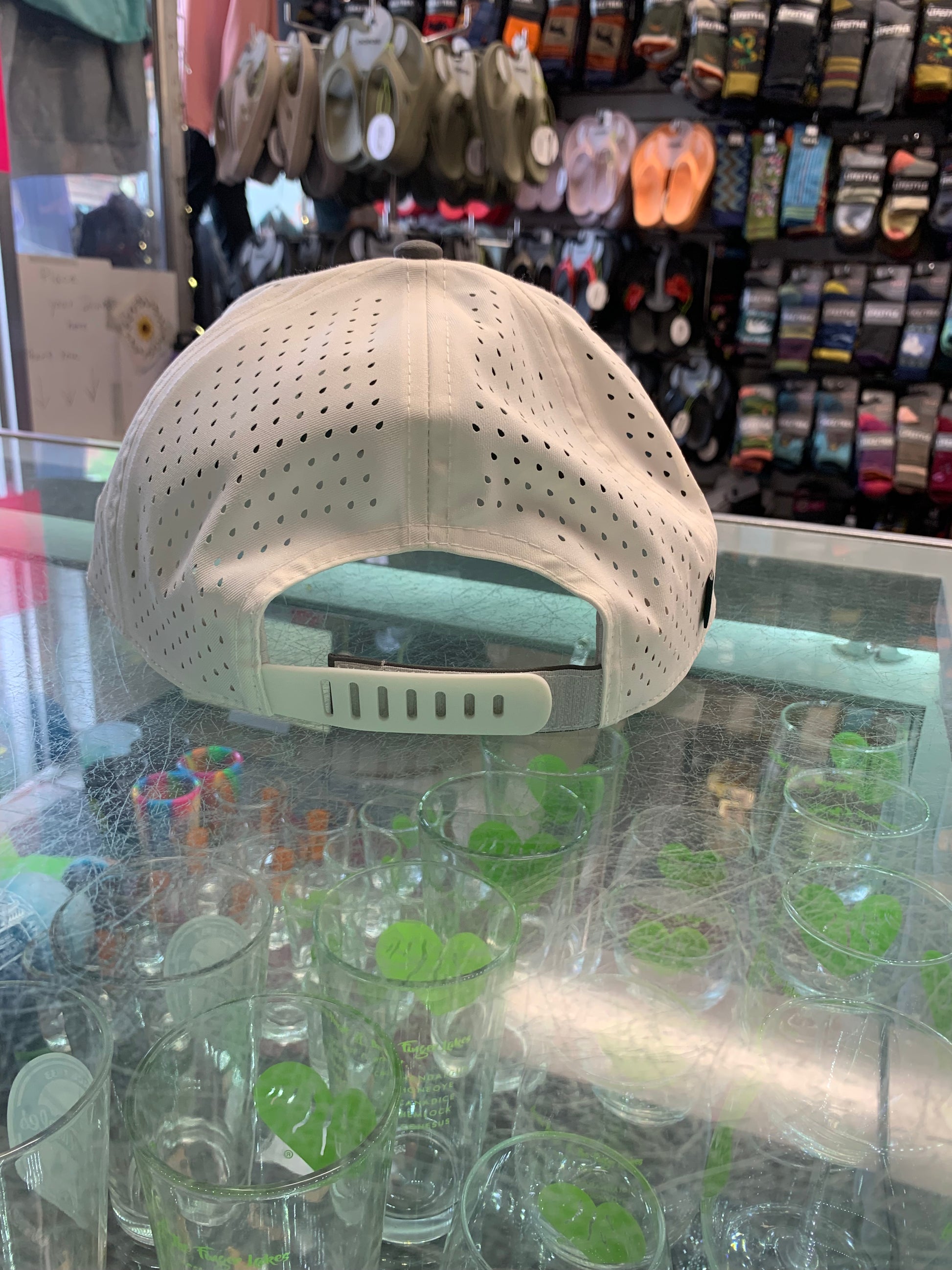 This adjustable, breathable Skaneateles hat is the perfect hat to wear on a warm summer day! 95% recycled polyester, 5% spandex.