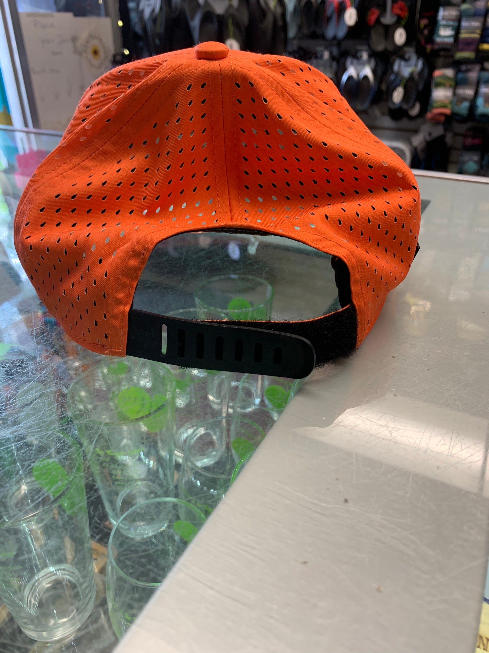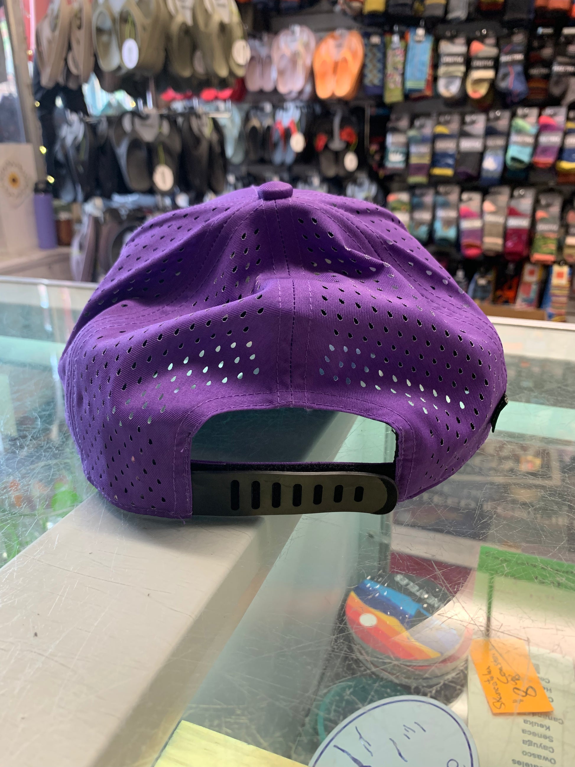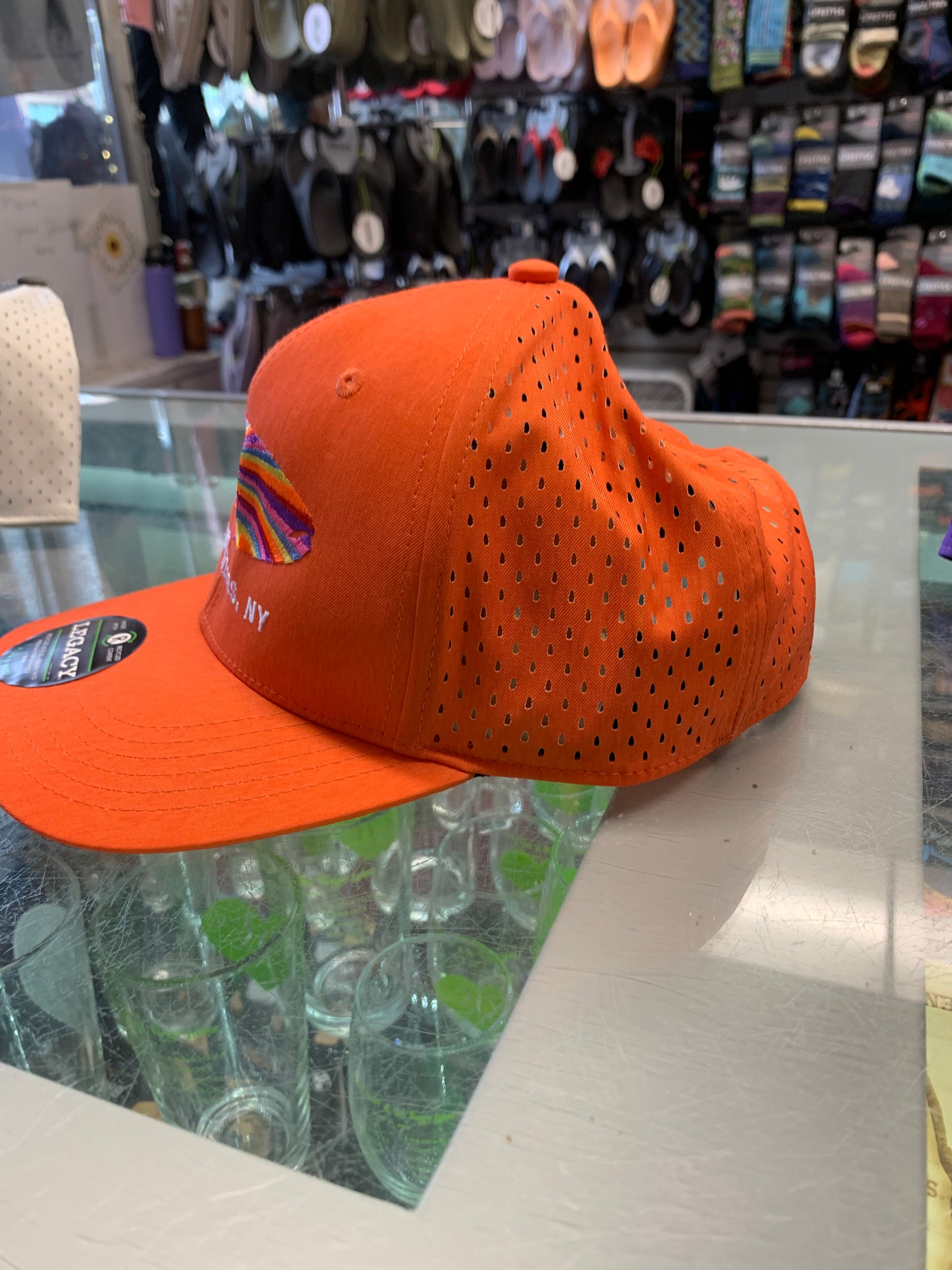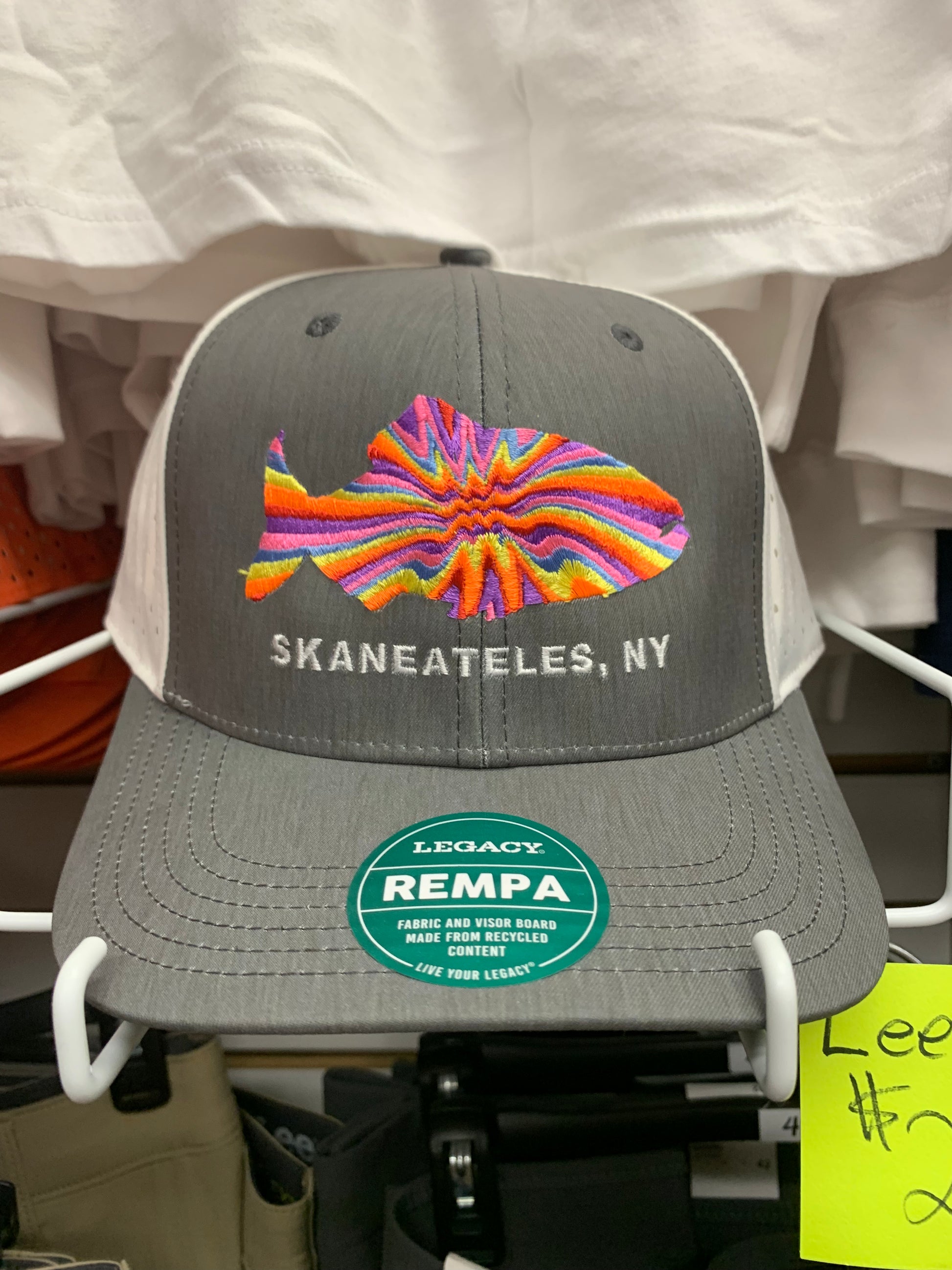 This adjustable, breathable Skaneateles hat is the perfect hat to wear on a warm summer day! 95% recycled polyester, 5% spandex.