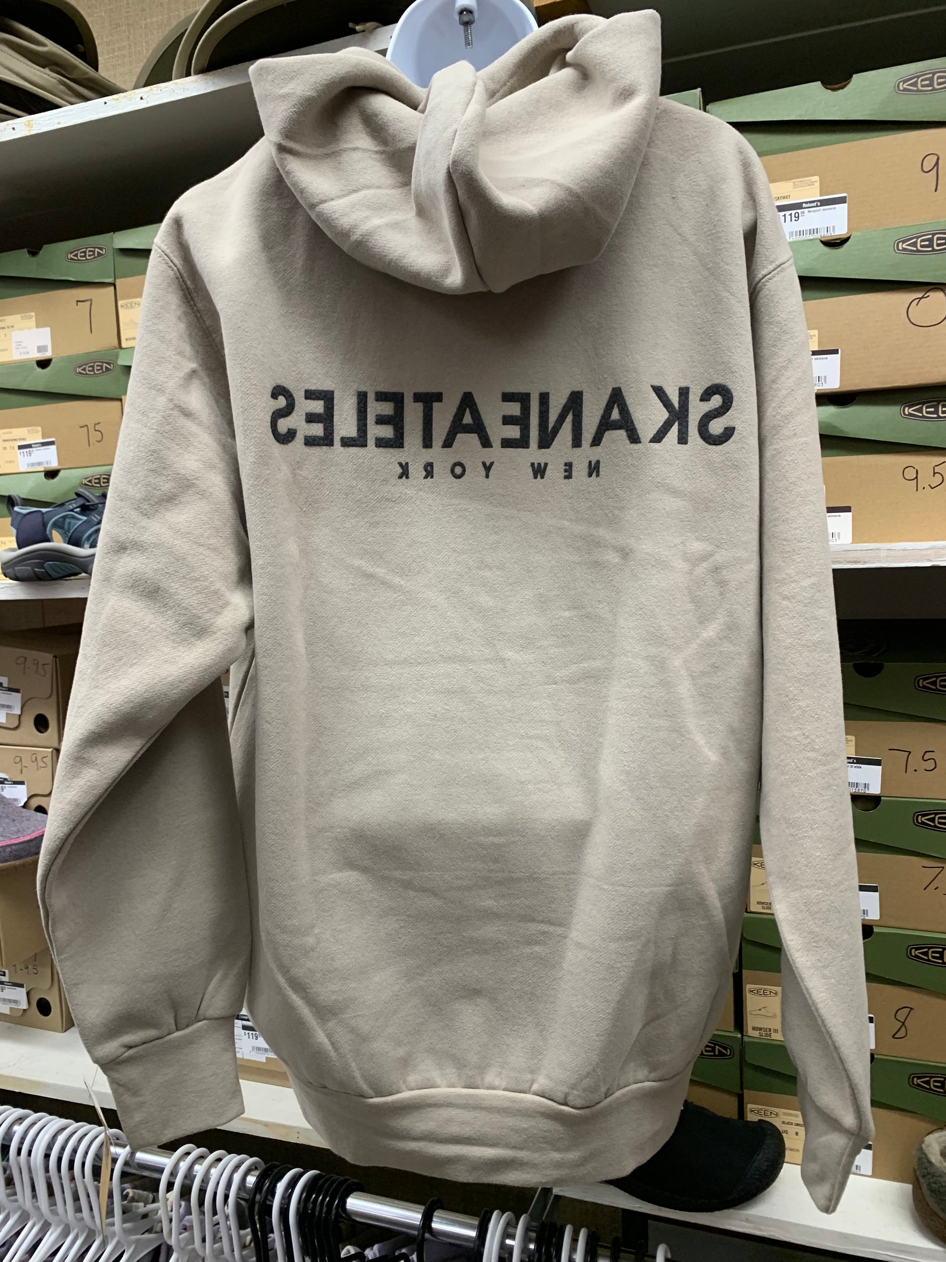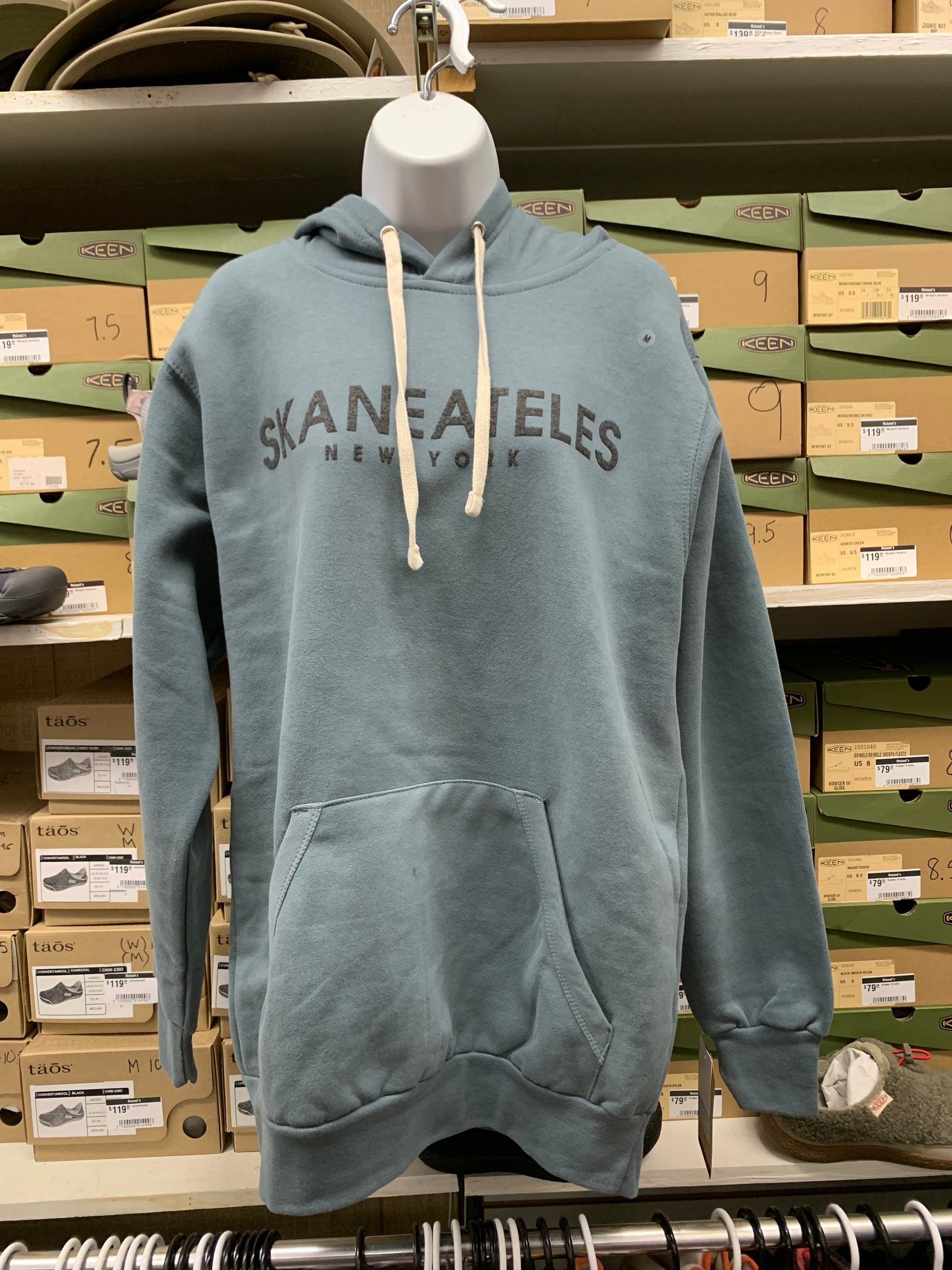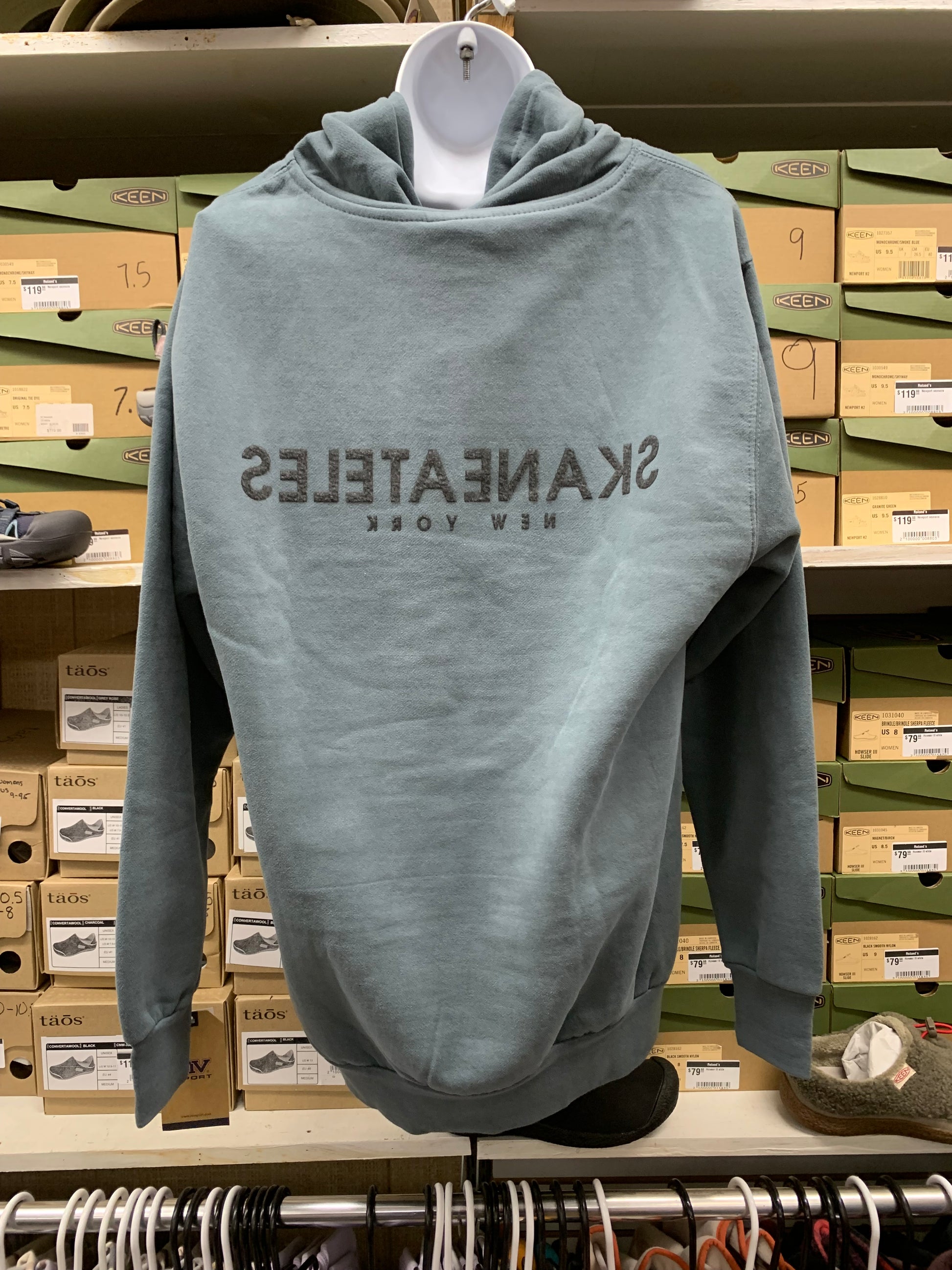 This sweatshirt from MV Sport has Skaneateles, New York on the front, while on the back it shows it backwards. 65% cotton, 35% polyester blend.