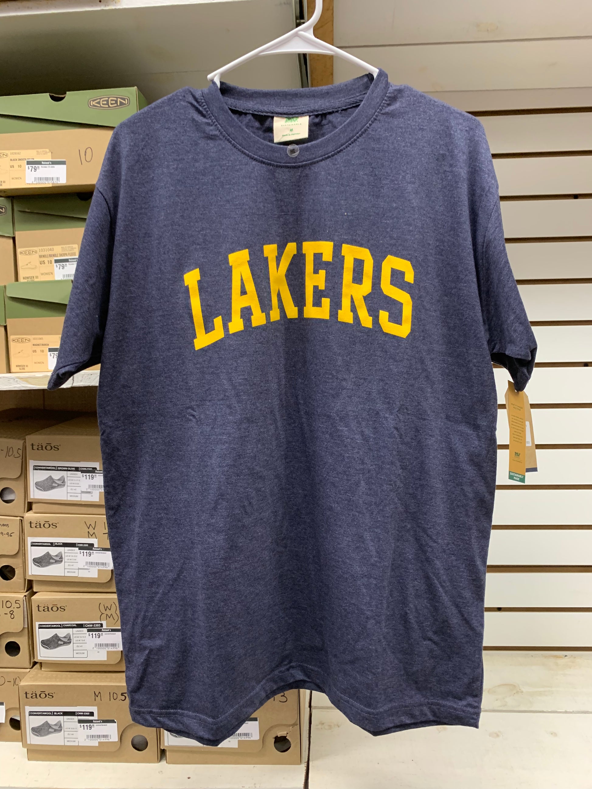 This shirt from MV Sport is a perfect way to show off your Laker pride! Made from a 60% organic cotton, 40% recycled polyester blend.