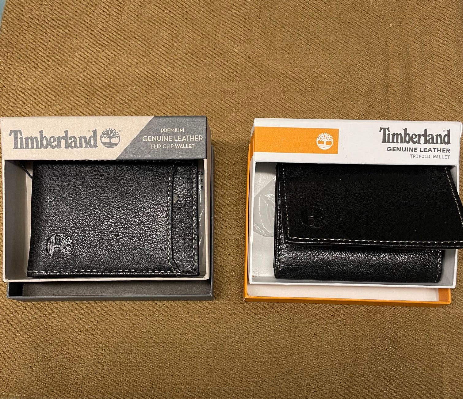 Timberland Leather Wallets that come in 2 styles; flip clip and trifold